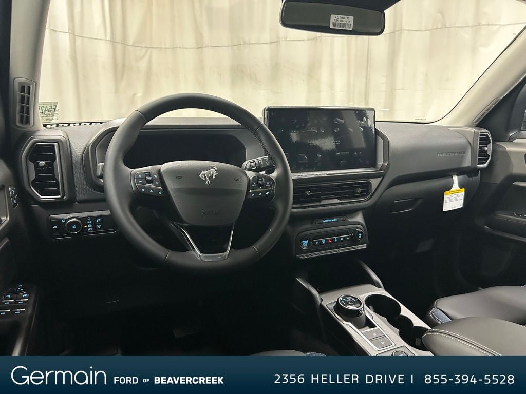 This beautiful 2025 Ford Bronco Sport Outer Banks is loaded with the following Factory Options: Equipment Group 300A, Outer Banks Tech Package+ (B&O Sound System by Bang & Olufsen, Connected Navigation, and HD Radio), 360-Degree Camera w/Trail & Split View, 4-Wheel Disc Brakes, 6 Speakers, ABS brakes, Air Conditioning, Alloy wheels, AM/FM radio: SiriusXM, AM/FM Stereo, Auto High-beam Headlights, Auto-dimming Rear-View mirror, Automatic temperature control, Brake assist, Compass, Delay-off headlights, Driver door bin, Driver vanity mirror, Dual front impact airbags, Dual front side impact airbags, Electronic Stability Control, Emergency communication system: SYNC 4 911 Assist, Four wheel independent suspension, Front anti-roll bar, Front Bucket Seats, Front Center Armrest, Front Driver/Passenger Seat Back Map Pockets, Front dual zone A/C, Front fog lights, Front Parking Sensors, Front reading lights, Fully automatic headlights, Garage door transmitter, Heated door mirrors, Heated front seats, Heated steering wheel, Illuminated entry, Knee airbag, Low tire pressure warning, Memory seat, Occupant sensing airbag, Outside temperature display, Overhead airbag, Overhead console, Panic alarm, Passenger door bin, Passenger vanity mirror, Power door mirrors, Power driver seat, Power passenger seat, Power steering, Power windows, Premium Trimmed Front Bucket Seats w/Ebony/Roast, Radio data system, Rain sensing wipers, Rear anti-roll bar, Rear Parking Sensors, Rear reading lights, Rear seat center armrest, Rear window defroster, Rear window wiper, Remote keyless entry, Reverse Brake Assist, Security system, SiriusXM, Speed control, Speed-sensing steering, Speed-Sensitive Wipers, Split folding rear seat, Steering wheel mounted audio controls, SYNC 4 w/Enhanced Voice Recognition, Tachometer, Telescoping steering wheel, Tilt steering wheel, Traction control, Trip computer, Variably intermittent wipers, and Wheels: 18 Ebony Black-Painted Aluminum.