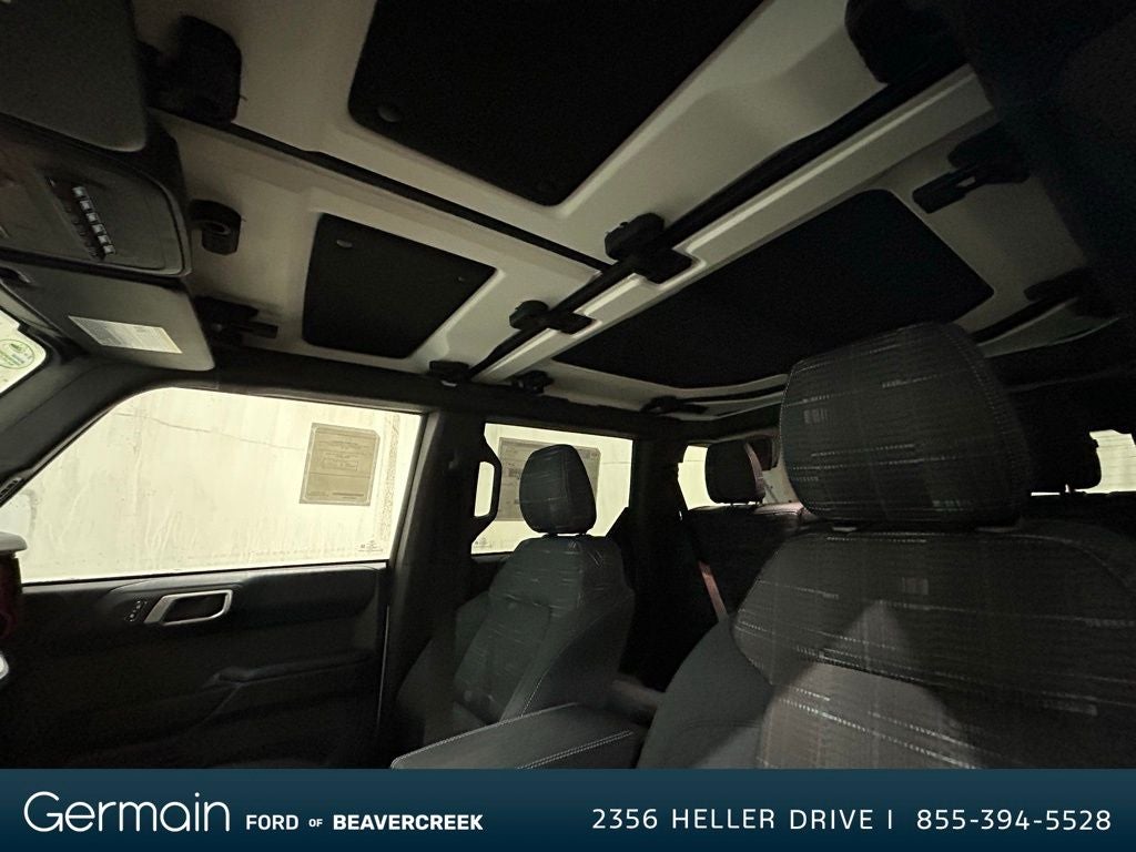 This stunning-looking 2025 Ford Bronco Heritage Edition is loaded with the following Factory Options: Equipment Group 662A Mid Package, 4-Wheel Disc Brakes, 7 Speakers, ABS brakes, Air Conditioning, Alloy wheels, AM/FM radio: SiriusXM with 360L, AM/FM Stereo, Auto High-beam Headlights, Auto-dimming Rear-View mirror, Automatic temperature control, Brake assist, Compass, Connected Navigation, Convertible HardTop, Convertible roof lining, Delay-off headlights, Door Storage Bags, Driver door bin, Driver vanity mirror, Dual front impact airbags, Dual front side impact airbags, Electronic Stability Control, Emergency communication system: 911 Assist, Exterior Parking Camera Rear, Front anti-roll bar, Front Bucket Seats, Front Center Armrest, Front dual zone A/C, Front fog lights, Front reading lights, Front wheel independent suspension, Fully automatic headlights, Glass rear window, Heated door mirrors, Heated front seats, Heated steering wheel, Illuminated entry, Integrated roll-over protection, Internet access capable: FordPass Connect, Leather Shift Knob, Low tire pressure warning, Navigation system: Connected Navigation, Occupant sensing airbag, Outside temperature display, Overhead airbag, Overhead console, Panic alarm, Passenger door bin, Passenger vanity mirror, Plaid Cloth Front Heated Bucket Seats, Power door mirrors, Power steering, Power windows, Radio data system, Rear window defroster, Rear window wiper, Remote keyless entry, Security system, SiriusXM w/360L, Speed control, Split folding rear seat, Steering wheel mounted audio controls, SYNC 4, Tachometer, Telescoping steering wheel, Tilt steering wheel, Traction control, Trip computer, Upgraded Carpet Front & Rear Floor Mats, Variably intermittent wipers, and Wheels: 17 Unique White.