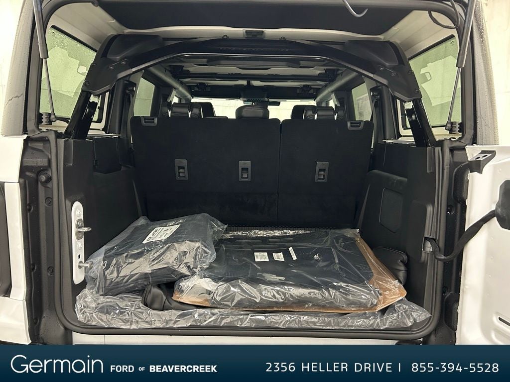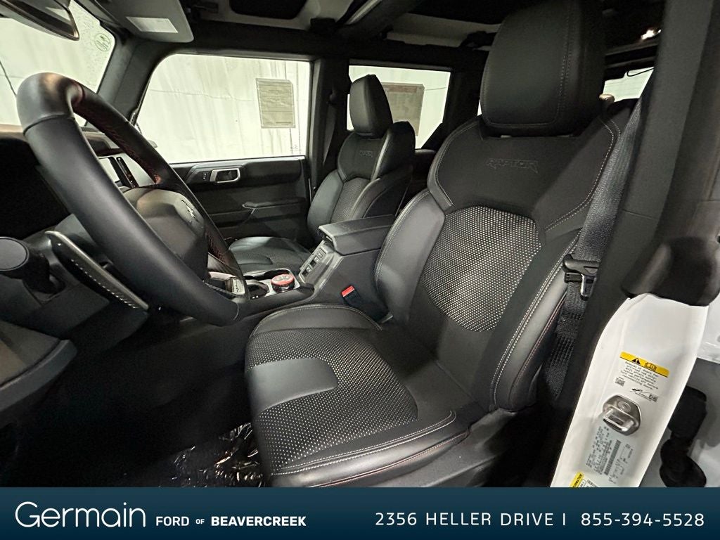 This superb 2025 Ford Bronco Raptor is loaded with the following Factory Options: Equipment Group 374A Lux Package, Raptor Black Appearance Package (Gloss Black Sideview Mirror Skull Caps, Interior Carbon Fiber Pack, and Wheels: 17 Dark Carbonized Gray Alloy Painted), 12 Speakers, 4-Wheel Disc Brakes, ABS brakes, Air Conditioning, Alloy wheels, AM/FM radio: SiriusXM with 360L, Auto High-beam Headlights, Auto-dimming Rear-View mirror, Automatic temperature control, Brake assist, Compass, Connected Navigation, Convertible HardTop, Convertible roof lining, Delay-off headlights, Driver door bin, Driver vanity mirror, Dual front impact airbags, Dual front side impact airbags, Electronic Stability Control, Emergency communication system: 911 Assist, Exterior Parking Camera Rear, Front anti-roll bar, Front Bucket Seats, Front Center Armrest, Front dual zone A/C, Front fog lights, Front reading lights, Front Row Top Panels & Door Storage Bags, Front wheel independent suspension, Fully automatic headlights, Garage door transmitter, Glass rear window, Hard Top Sound Deadening Headliner, Heated door mirrors, Heated front seats, Heated steering wheel, Illuminated entry, Integrated roll-over protection, Internet access capable: FordPass Connect, Leather Shift Knob, Low tire pressure warning, Marine Grade Vinyl Bucket Seats, Navigation system: Connected Navigation, Occupant sensing airbag, Outside temperature display, Overhead airbag, Overhead console, Panic alarm, Passenger door bin, Passenger vanity mirror, Power door mirrors, Power steering, Power windows, Radio data system, Radio: B&O Sound System by Bang & Olufsen, Rear anti-roll bar, Rear seat center armrest, Rear window defroster, Rear window wiper, Rear-Window Defroster & Washer, Remote keyless entry, Security system, Shadow Black Painted Hard Top, SiriusXM w/360L, Speed control, Split folding rear seat, Steering wheel mounted audio controls, SYNC 4, Tachometer, Telescoping steering wheel, Tilt steering wheel, Traction control, Trip computer, Turn signal indicator mirrors, Variably intermittent wipers, Voltmeter, and Wheels: 17 Black High Gloss-Painted Aluminum.