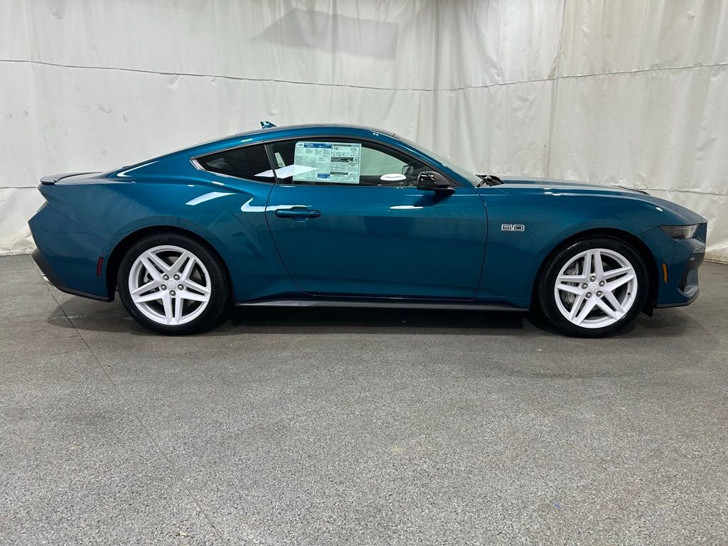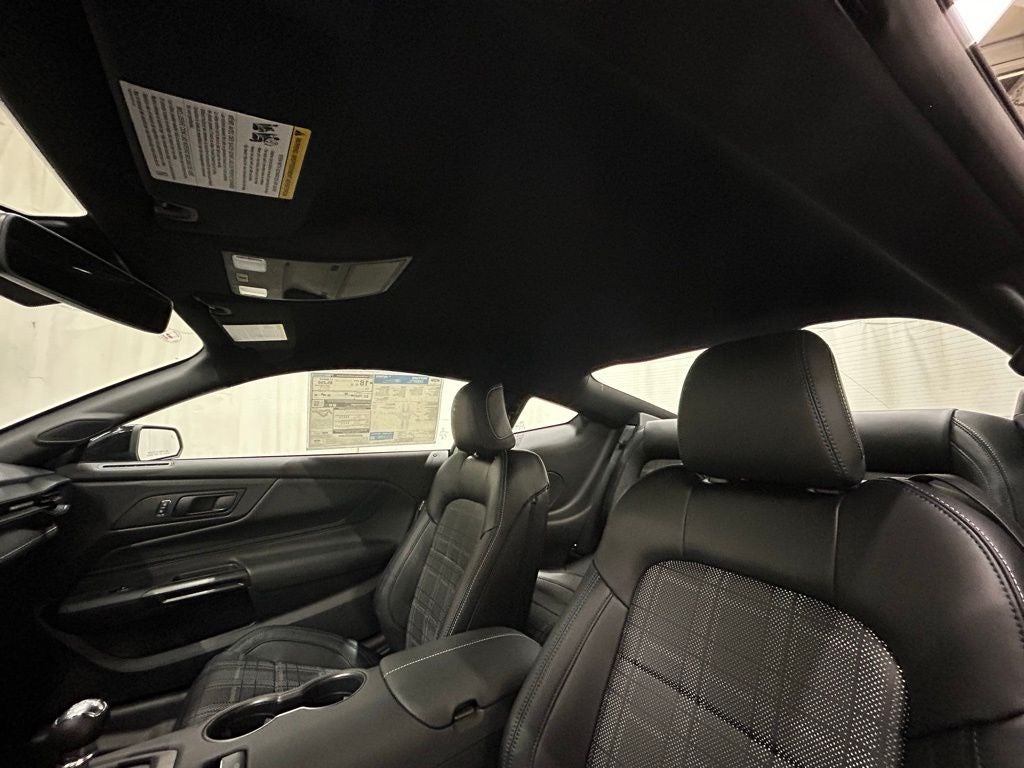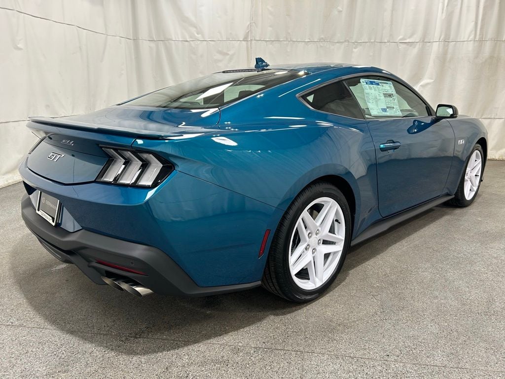 This stunning 2026 Ford Mustang GT is loaded with the following Factory Options: 4-Wheel Disc Brakes, ABS brakes, Air Conditioning, Alloy wheels, AM/FM Stereo, Auto High-beam Headlights, Automatic temperature control, Brake assist, Bumpers: body-color, Compass, Delay-off headlights, Driver door bin, Driver vanity mirror, Dual front impact airbags, Dual front side impact airbags, Electronic Stability Control, Emergency communication system: 911 Assist, Exterior Parking Camera Rear, Four wheel independent suspension, Front anti-roll bar, Front Bucket Seats, Front Center Armrest, Front dual zone A/C, Front reading lights, Fully automatic headlights, Illuminated entry, Knee airbag, Leather Shift Knob, Leather steering wheel, Low tire pressure warning, Occupant sensing airbag, Outside temperature display, Overhead airbag, Overhead console, Panic alarm, Passenger door bin, Passenger vanity mirror, Power door mirrors, Power steering, Power windows, Radio data system, Rain sensing wipers, Rear anti-roll bar, Rear Parking Sensors, Rear window defroster, Remote keyless entry, Speed control, Speed-sensing steering, Speed-Sensitive Wipers, Split folding rear seat, Sport steering wheel, Steering wheel mounted audio controls, SYNC 4, Tachometer, Telescoping steering wheel, Tilt steering wheel, Traction control, Trip computer, Variably intermittent wipers, and Voltmeter.