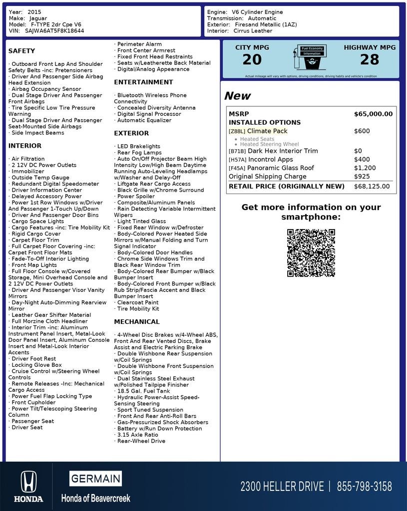 2015 Jaguar F-TYPE Base Coupe V6