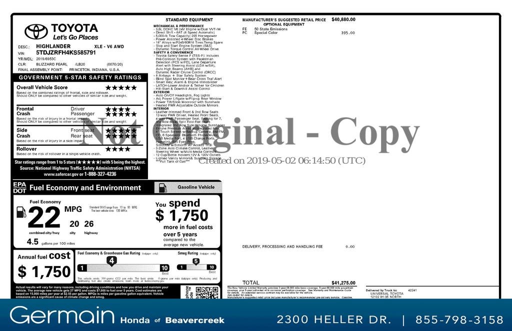 - Vehicle Name: Toyota Highlander