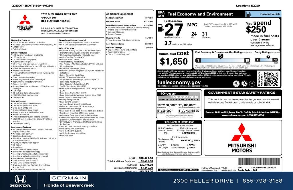 2023 Mitsubishi Outlander SE